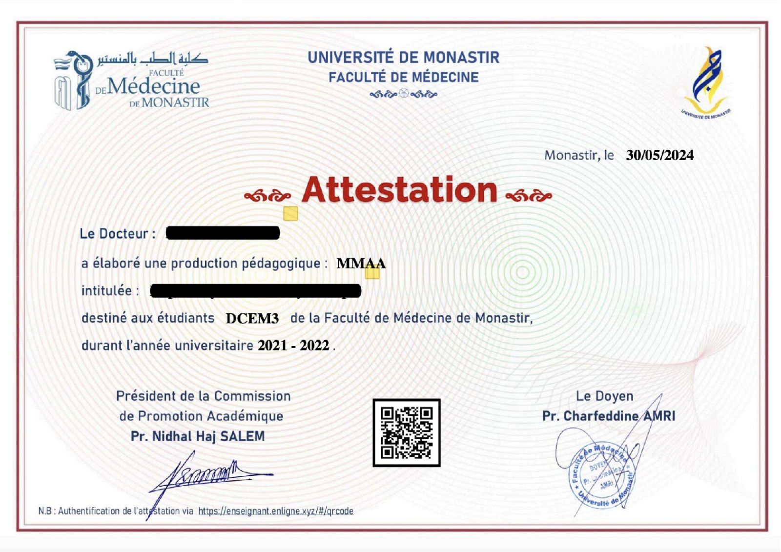 Nous souhaitons bonne chance à tous les collègues qui passeront prochainement les concours de MCA et de PHU. La Faculté reste comme d'habitude à votre disposition pour toute aide académique et assistance technique afin de faciliter votre promotion de grade.