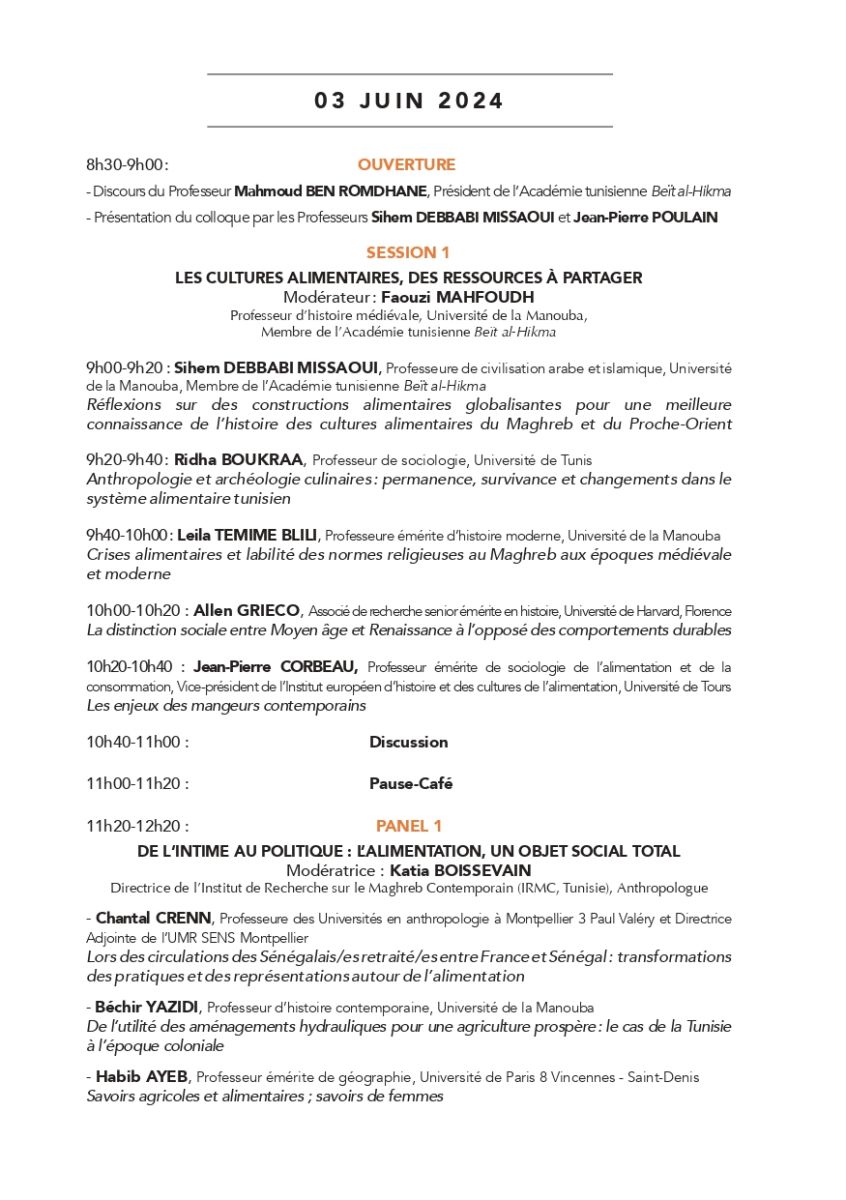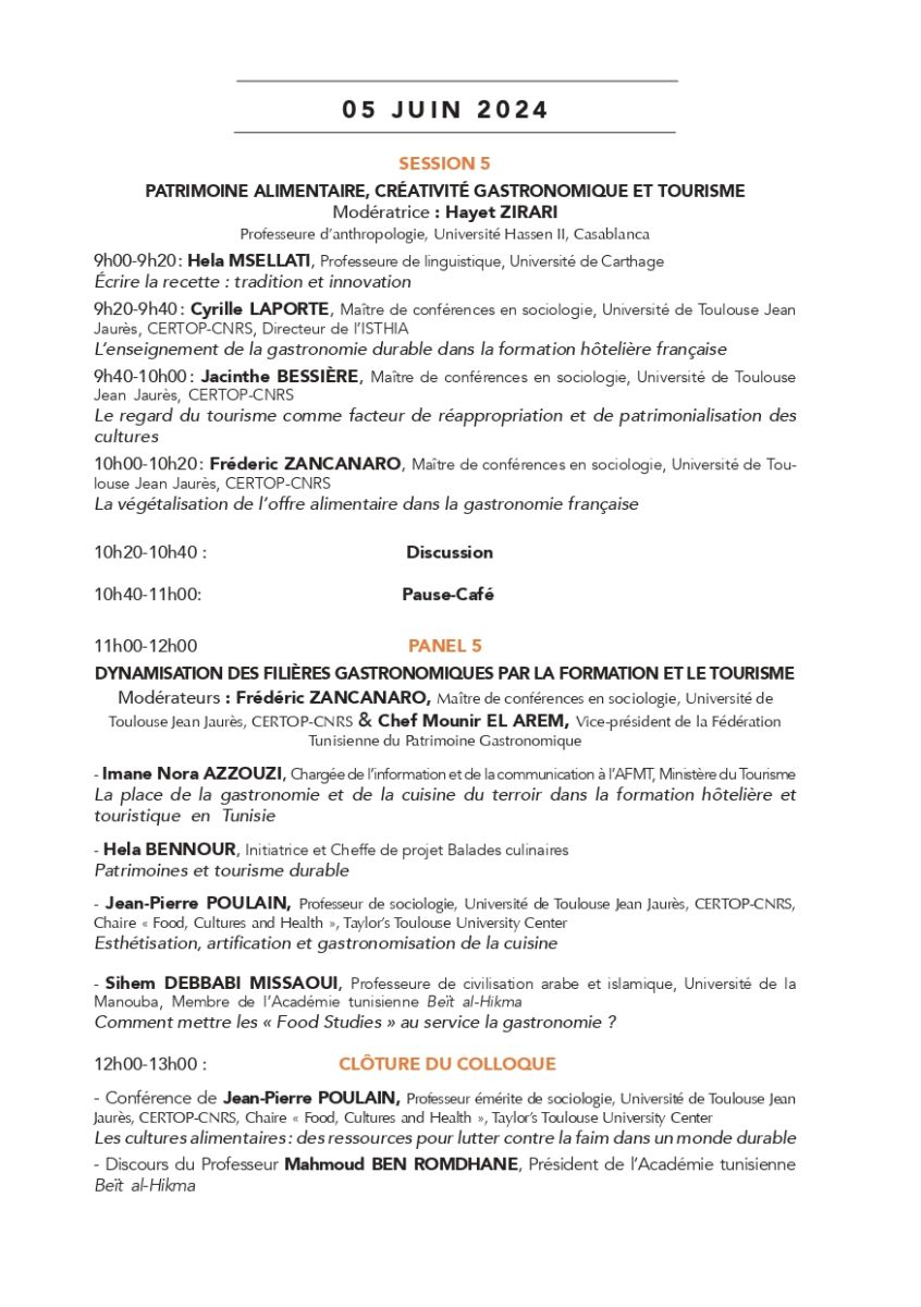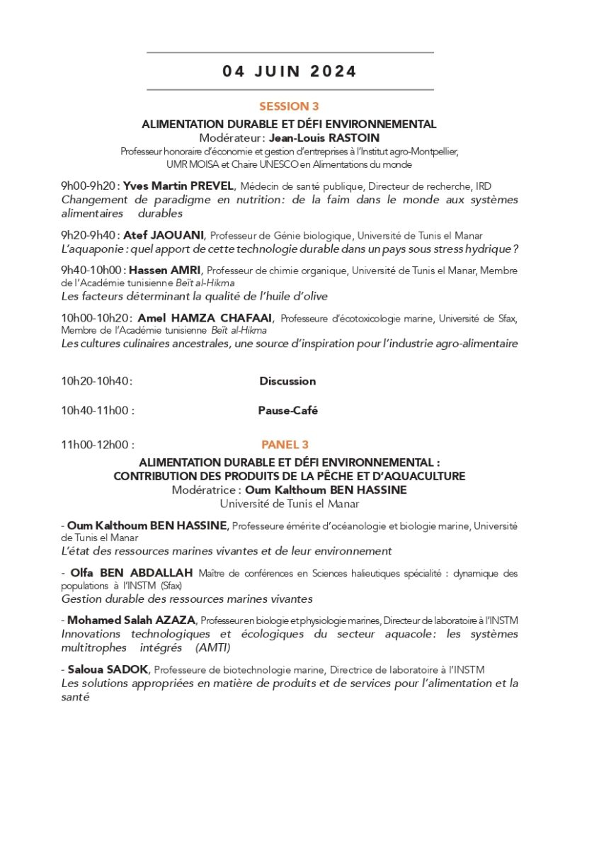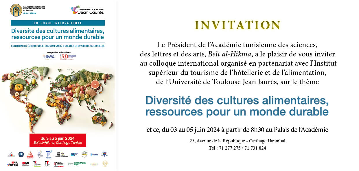 invitation au colloque international sur le thème " Diversité des cultures alimentaires, ressources pour un monde durable", du 3 au 5 juin 2024 à 8h30.