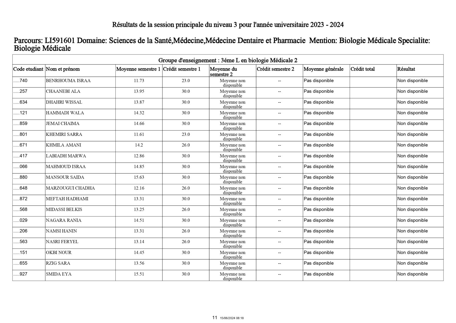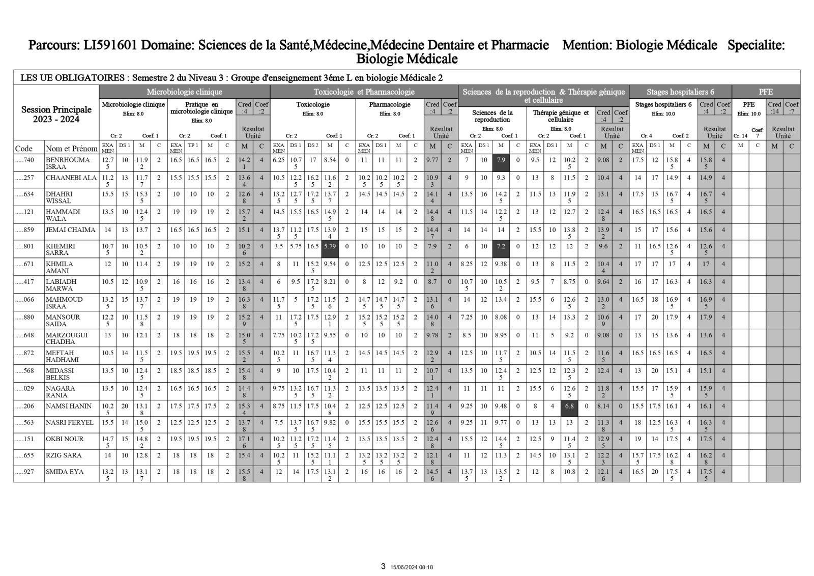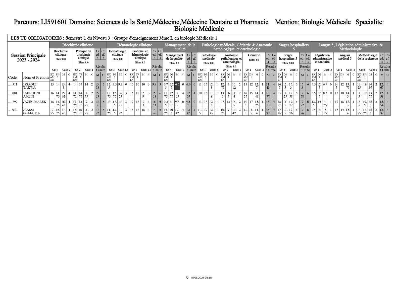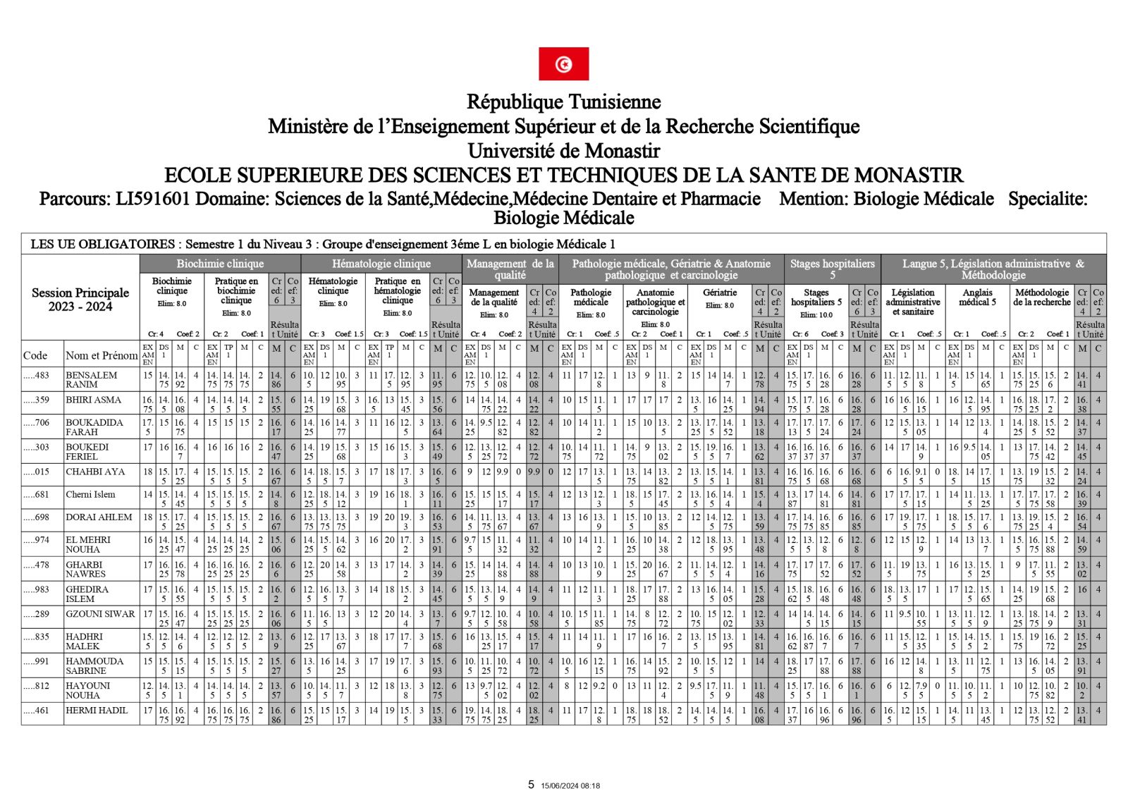 RESULTAT SESSION PRINCIPALE BIOLOGIE MEDICALE