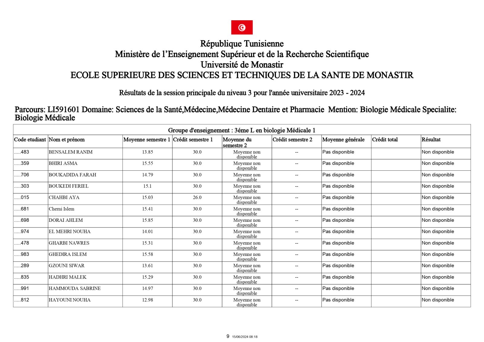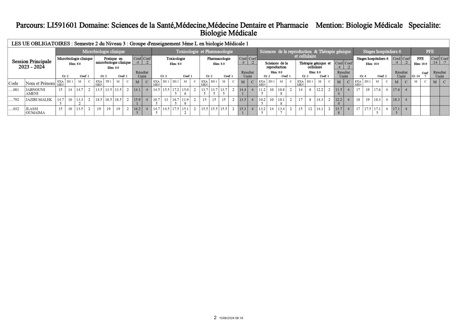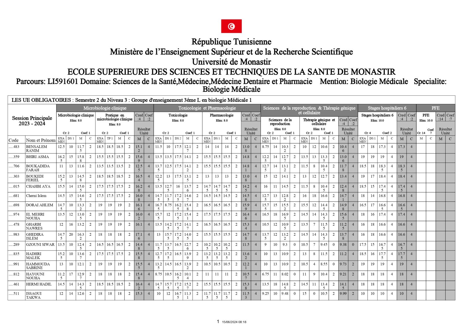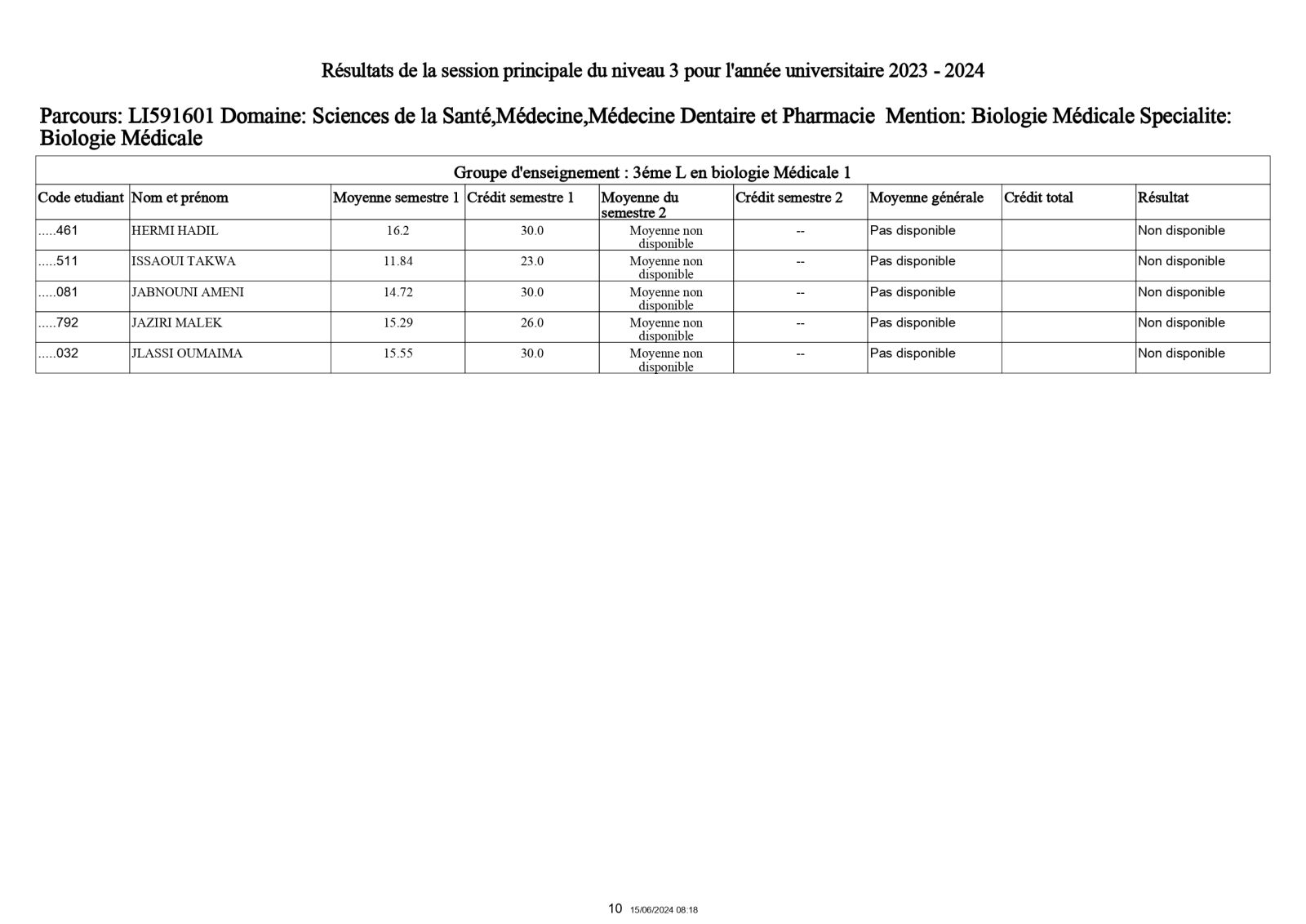 RESULTAT SESSION PRINCIPALE BIOLOGIE MEDICALE