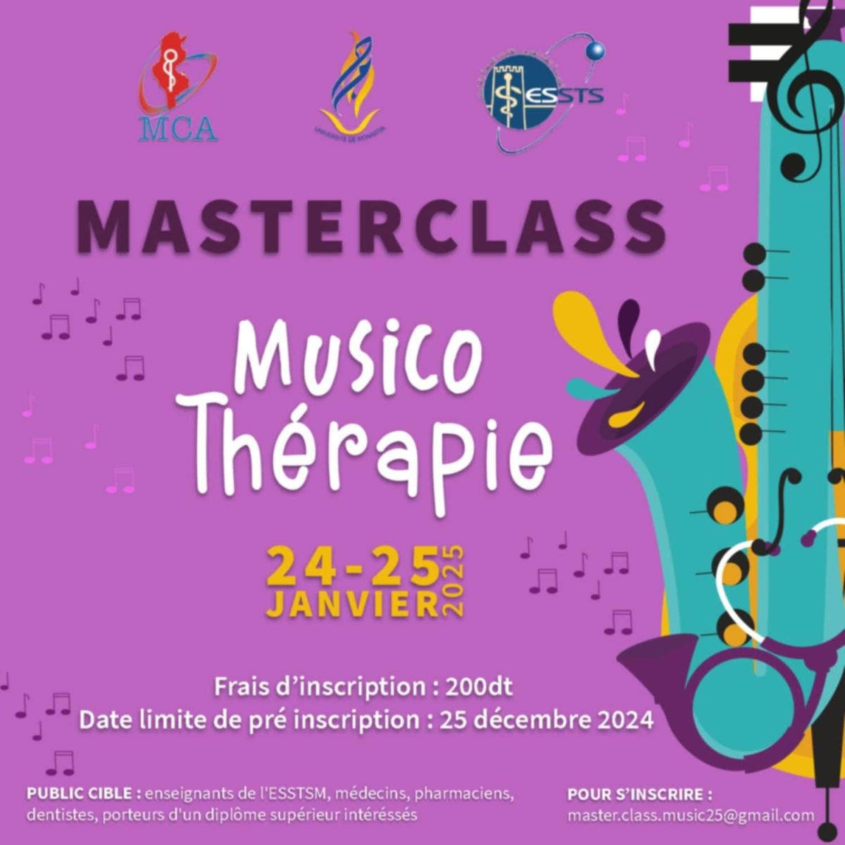 L'ESSTSM, en collaboration avec l'association MCA organisent un master class en musicothérapie et ce le 24-25 Janvier 2025.
