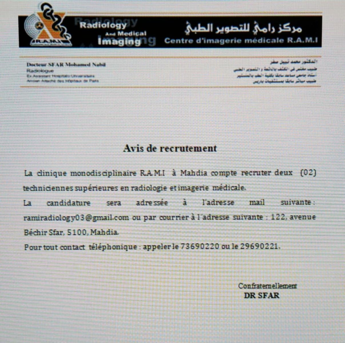 AVIS DE RECRUTEMENT