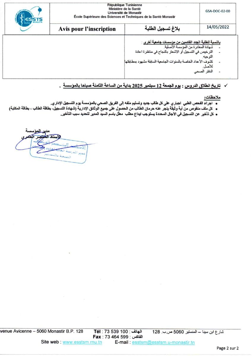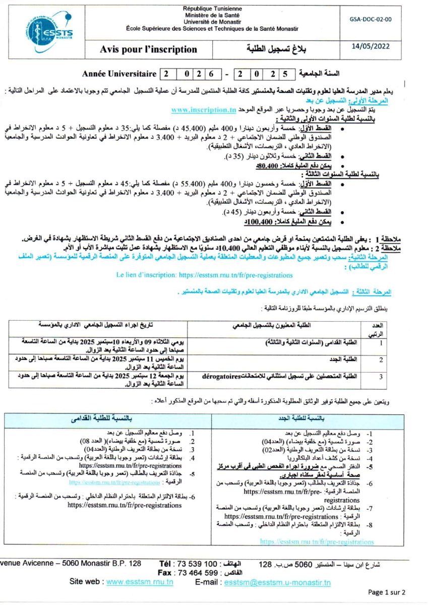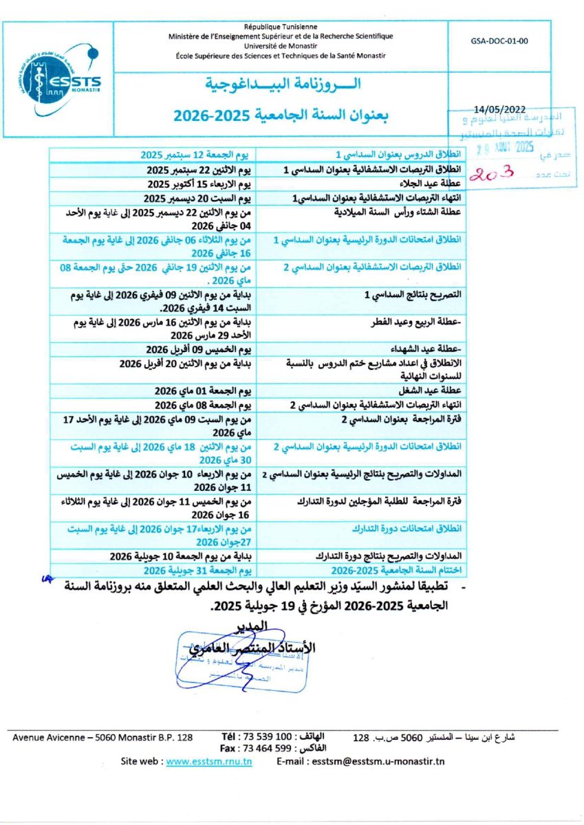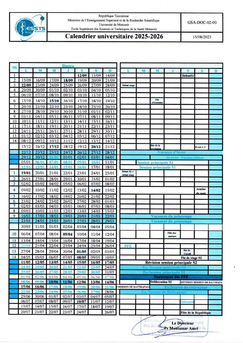 Calendrier pédagogique 2025-2026 et avis aux étudiants pour inscription