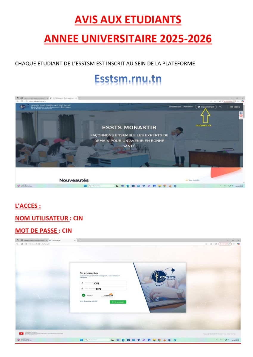 AVIS D'INSCRIPTION PLATEFORME ESSTSM